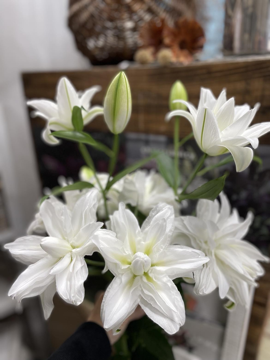 当社の敷地内にあるフラワーショップでは自社生産のユリと各種生花にて花束、アレンジメント、ブライダルブーケ、壇上装花、切り花の販売をしております。※花束・アレンジメント等のユリ以外の花を含む商品をご注文の際は、ご来店日から最短で4日前までにご連絡ください。お客様にとっての大切なイベント・行事を彩るために、花々が新鮮な状態でお作りしております。花の仕入れ等の都合がありますので、ご理解の程、よろしくお願致します。